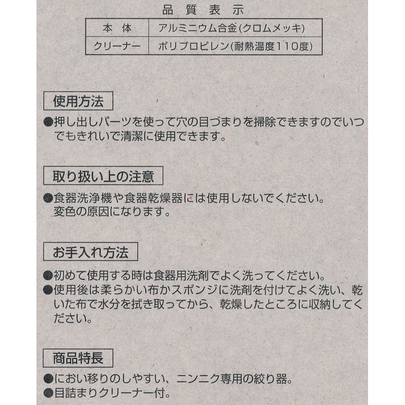 - Material: Body: Aluminum alloy (chrome plating), Cleaner: Polypropylene (heat-resistant temperature: 232°F (110°C)