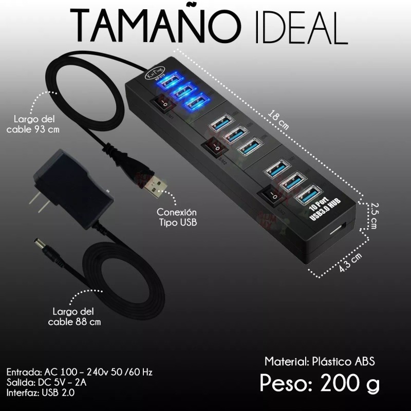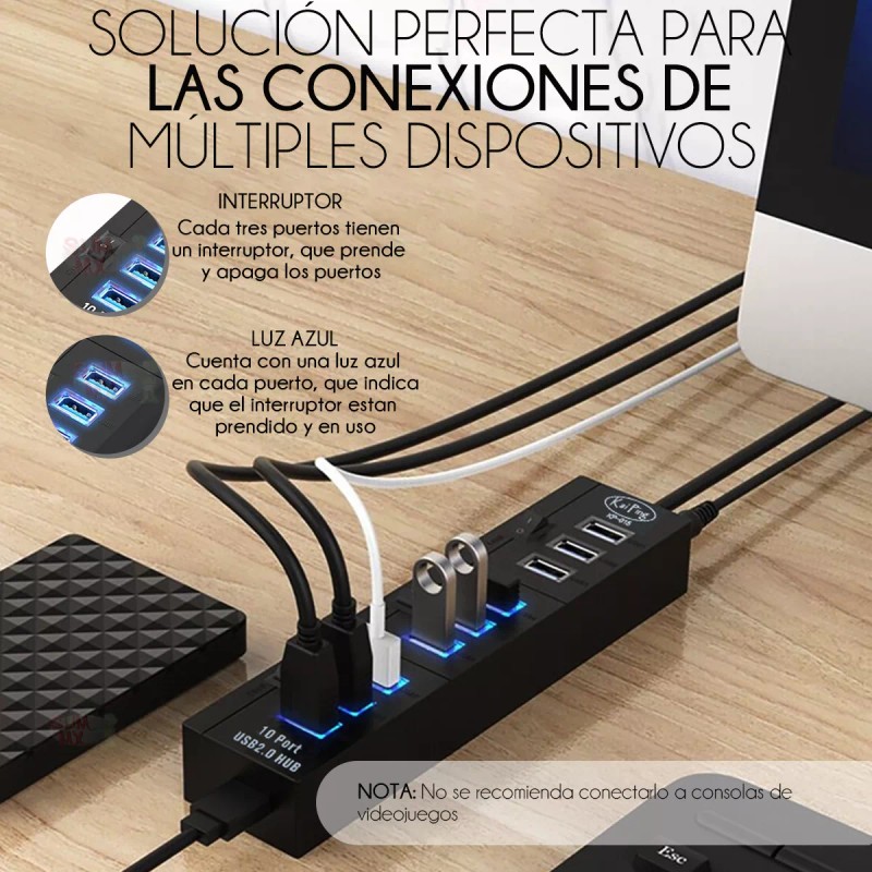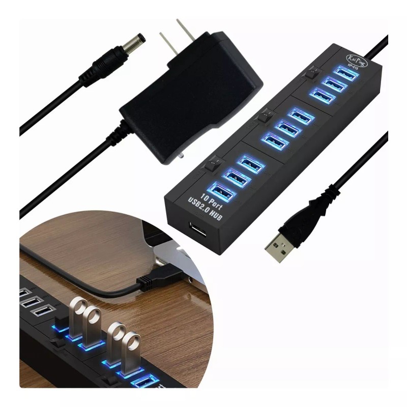 Kai Ping Hub 10 Puertos Usb 2.0 Alta Velocidad Pc Laptop Eliminador