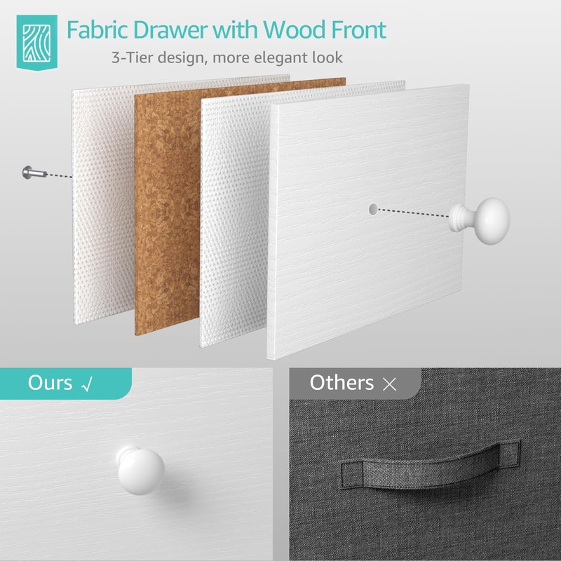 - Fabric Drawer with Wood Front: This White night stand has FABRIC drawers with wood front,elegant look and easy to clean,removable Wooden handle.Storage open shelf,offer stable support and ensure years of use,convenient to clean