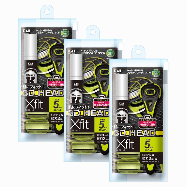 Kai Xfit 5-Blade Razor 2-Piece Travel Pack [Bulk Purchase] Set of 1 (x3)