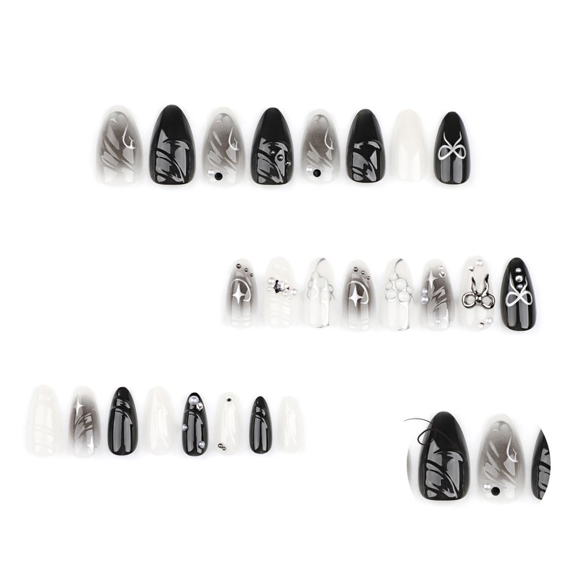 Kaichen Press On Nails - Black Butterfly Medium Almond Nails with 3D Bow | 12 Sizes - 24pcs Nail Kit with Adhesive Tabs