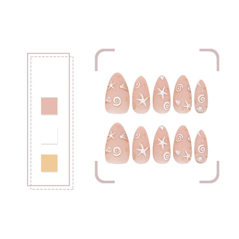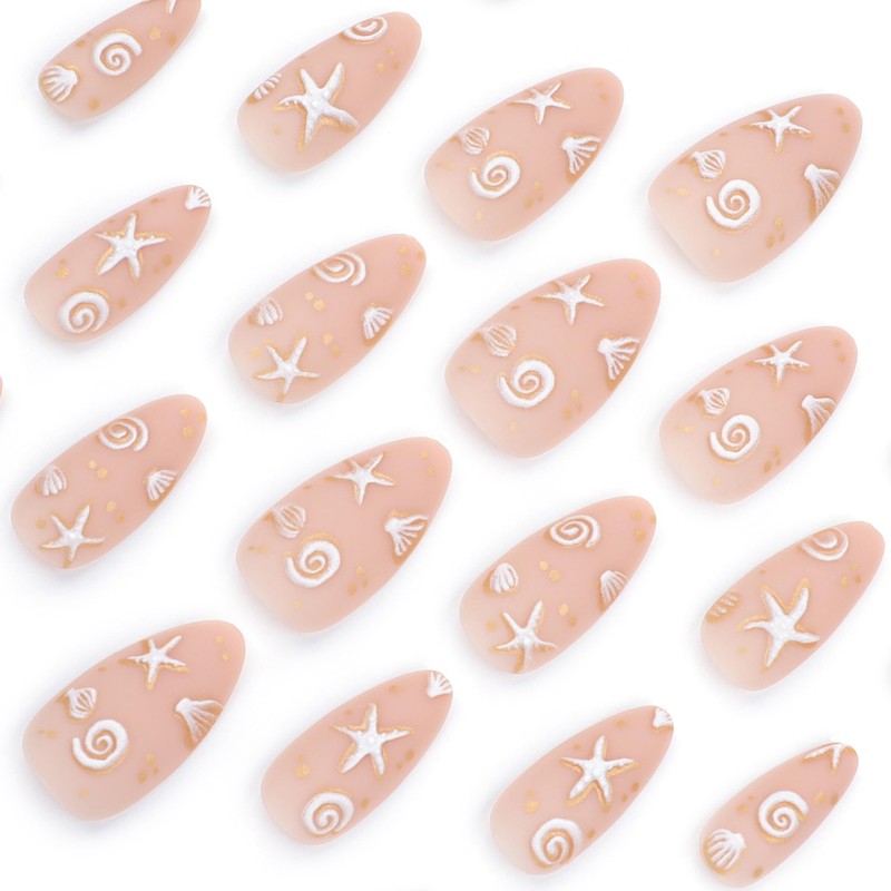 Kaichen Press On Nails - Ocean & Shell & Stars Medium Almond Nails | 12 Sizes - 24pcs Nail Kit with Adhesive Tabs