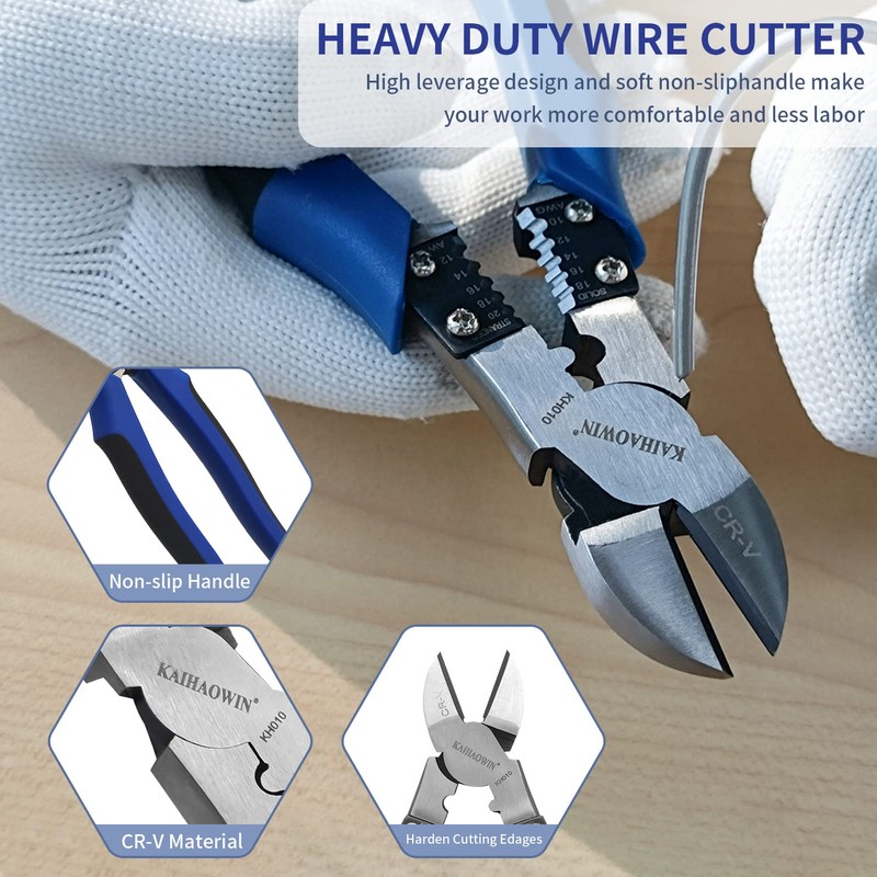 KAIHAOWIN 8.1 inches (205 mm) Nipper, Strong Nipper, Electrician Nipper, Thin Blade, Wire Cutter, Precision Crimping Pliers, Compatible with Iron Wire, Multi-functional Tool