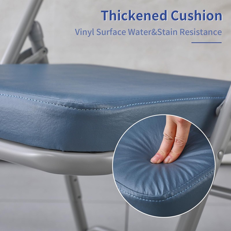 KAIHAOWIN Folding Chairs Ultra Thick Padded Foldable Chair Indoor Comfortable Metal Chairs with Super Soft Cushion-Blue