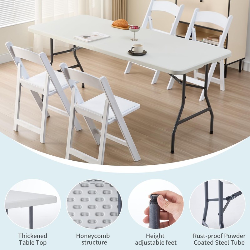 - Sturdy & Robust:Constructed from heavy-duty blow-molded High Density Polyethylene (HDPE), this plastic folding table is much stronger than typical hollow tables. Features powder-coated steel legs, non-slip rubber feet for enhanced stability during use.