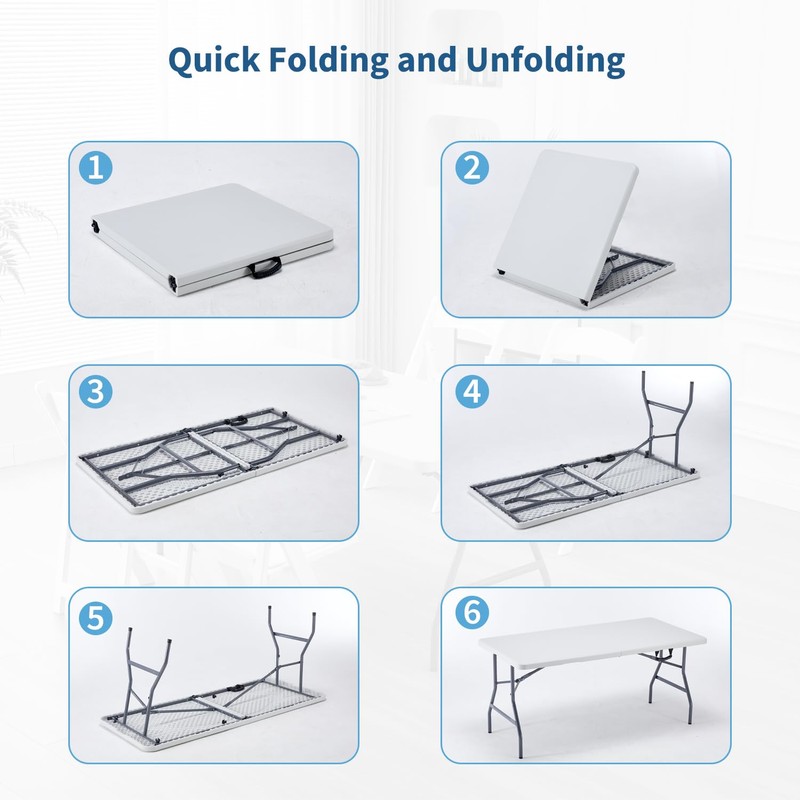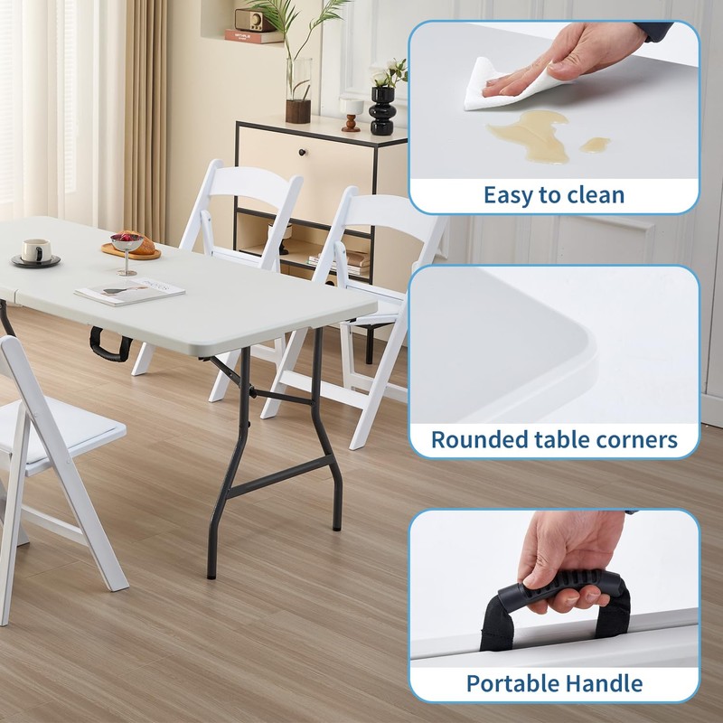 - Ready-to-Use:Arrives fully assembled and folded, ready for immediate use without any setup required. Simply open the box, unfold the portable plastic table, and it's ready to serve its purpose.