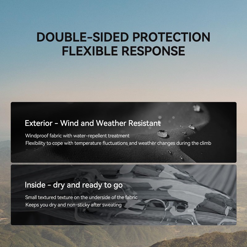 - Lightweight, windproof and water-repellent stretch fabric for changeable weather