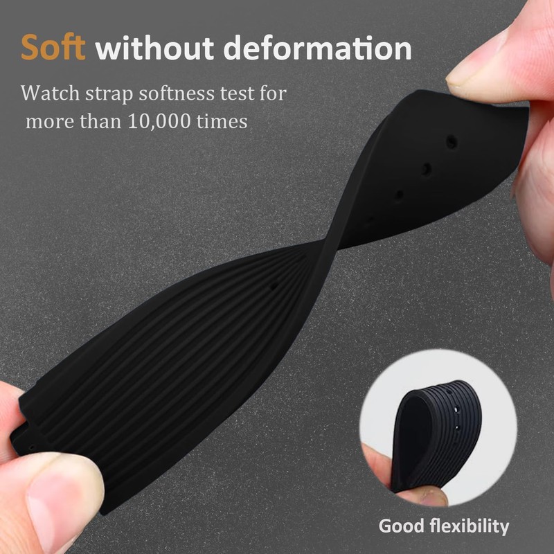 KaiMai Rubber Strap for Hublot 19mm*25mm*22mm Big Bang Series Watch Strap with waterproof Linear texture(without metal buckle) for Men and Women