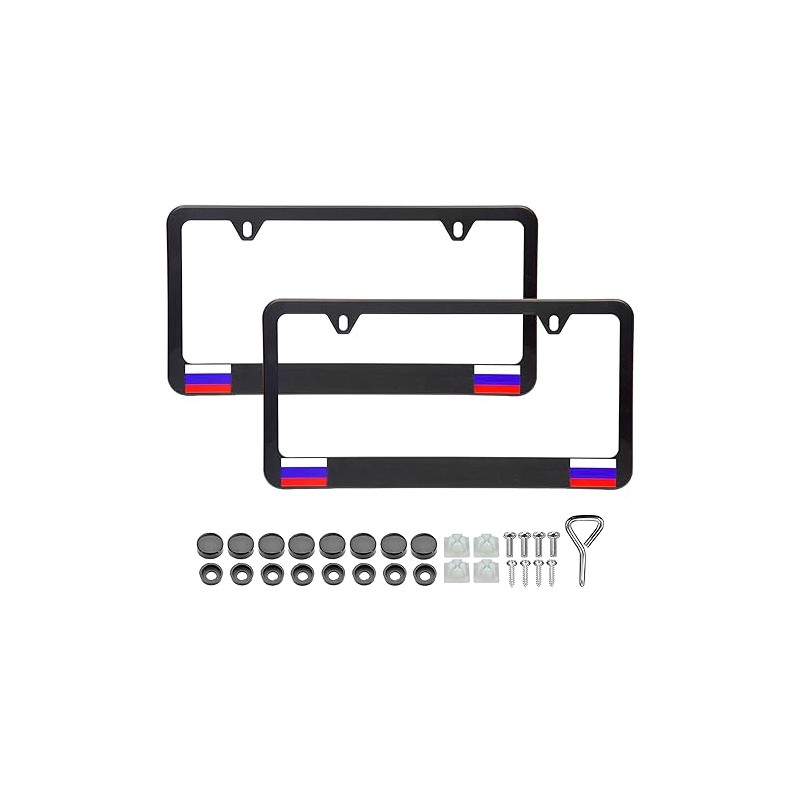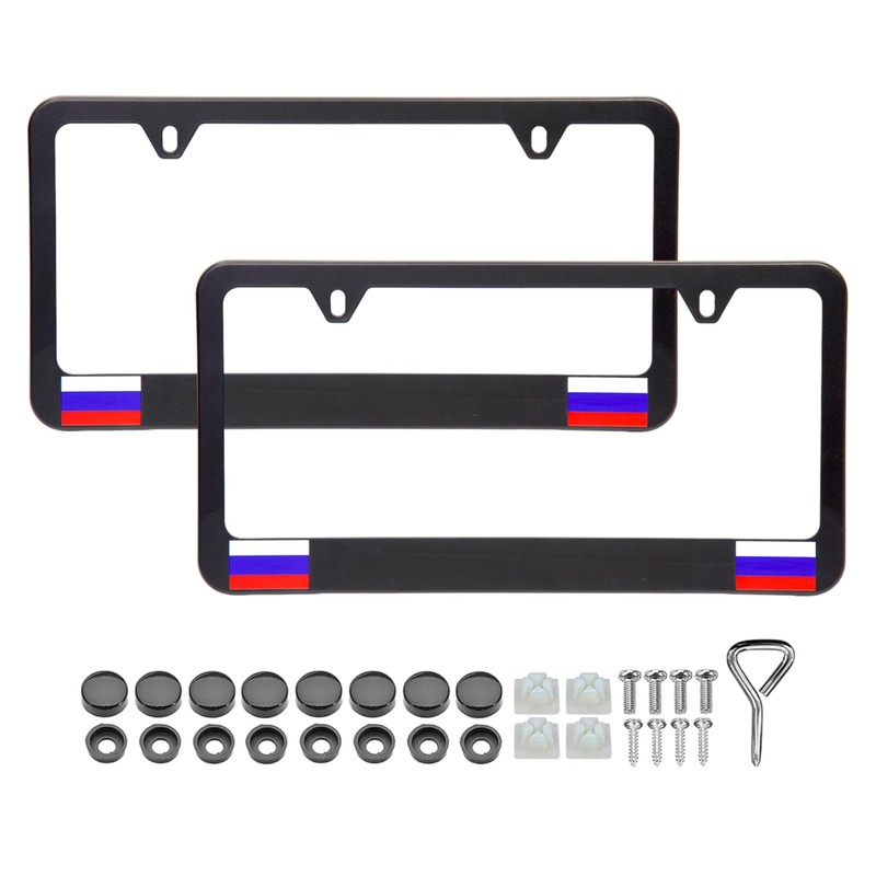 KAIMAK Russia Russian Flag Aluminum License Plate Frames - 2 Pack with free Screws Caps