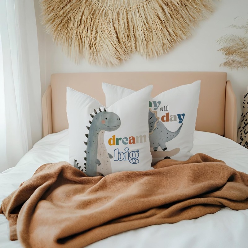 KAIOUS Dinosaur Pillow Case, Dream Big Dinosaur Dino Throw Pillows Cover Cushion Cases Decor for Kids Toddler Girls Boys Room Bed Nursery 18x18 Inches Set of 2