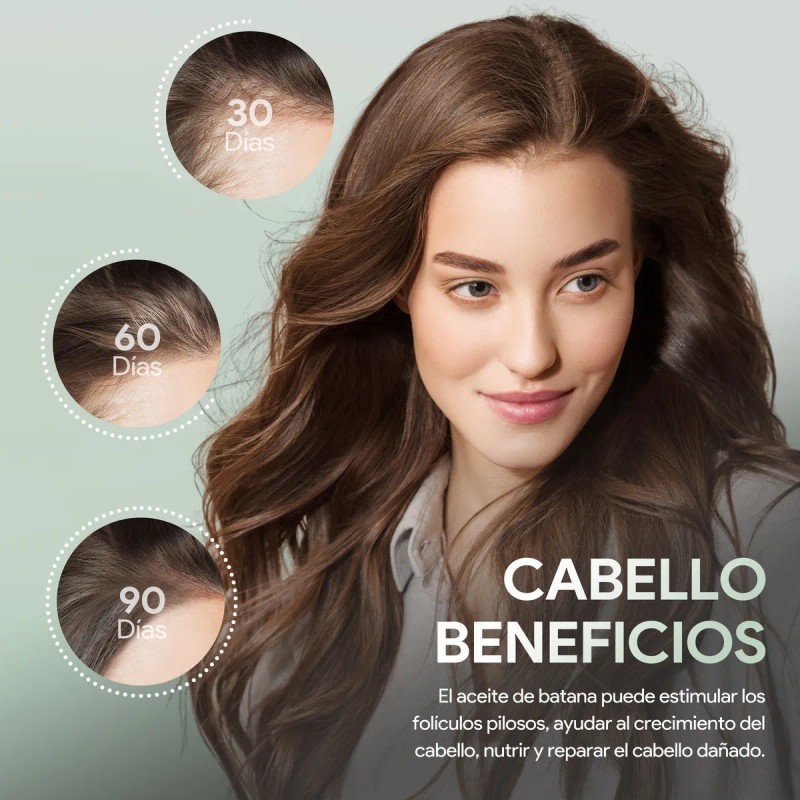 El rico nutriente del aceite kaisasa batana es capaz de llegar directamente a las profundidades de los folículos pilosos, activar los folículos pilosos latentes, promover el crecimiento natural del cabello, fortalecer el cabello, nutrir profundamente, fortalecer cada mechón de cabello desde las raíces hasta las copas del cabello, reducir la rotura y la bifurcación, y hacer que su cabello sea más resistente, denso, saludable y elástico.