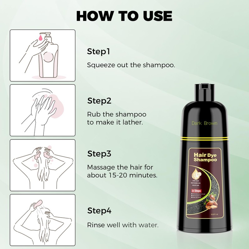 - [EASY TO USE AND TIME SAVING] Our hair dye shampoo doesn't require traditional hair colour tools, just apply it as you would normal shampoo, saving time and effort,and has a 3-in-1 function
