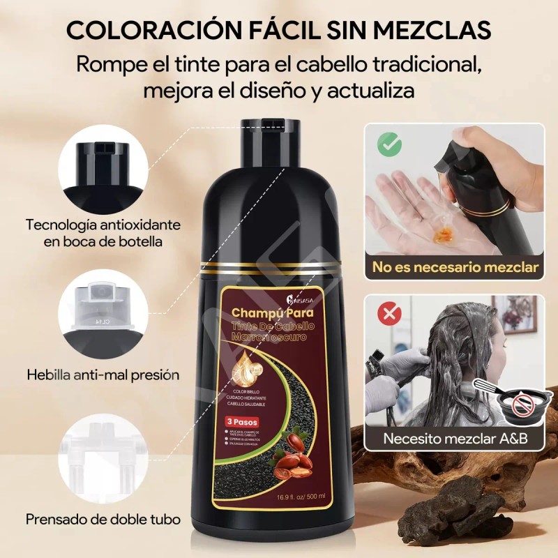 Kaisasa® Shampoo Con Tinte Cubre Canas Con Aceite De Argán - Marrón Oscuro (Descripción Corta)