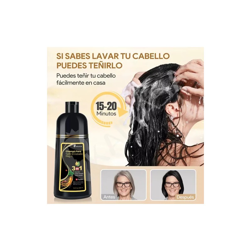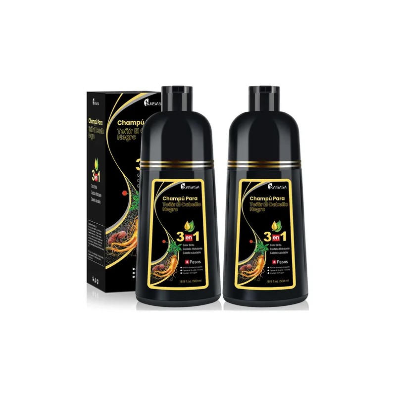 Kaisasa® Shampoo Con Tinte Cubre Canas Natural Jengibre 500ml-Negro
