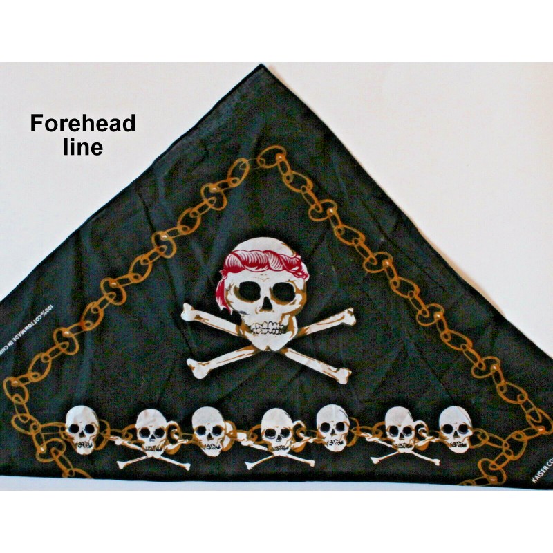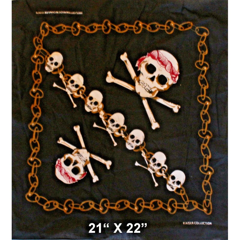 Kaiser New Biker Red Skull Bandana Rebel 22" X 21" Durag Skull forehead line Kaiser