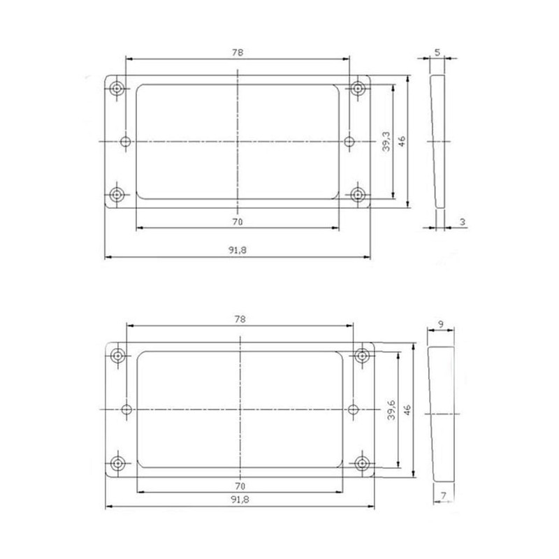 - Space for humbucker pickup:70x39.3mm; Distance between two pickup height screws: 78mm; Frame height: 3x5mm and 7x9mm