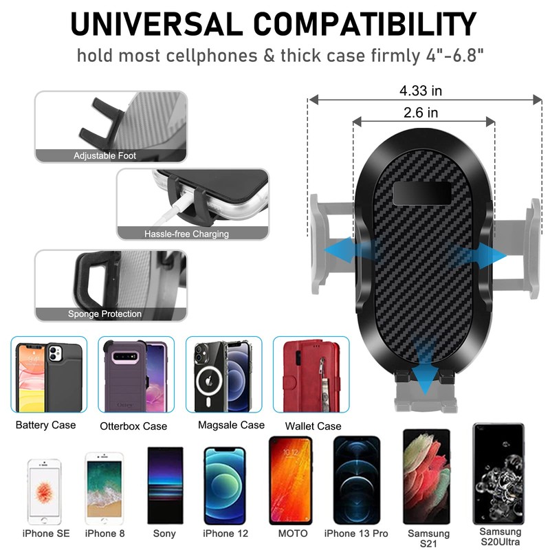 - 【Multi-Purpose Vehicle Phone Holder】High side base anti-skid texture design, non slip wear, the items will not easy to slip. It holds onto your phone devices, firmly while off road driving. No damage to your phone. Also compatible with some action camera, POV cameras and other devices, fit well for all mobile phones between 4''-7''in width and thick case.