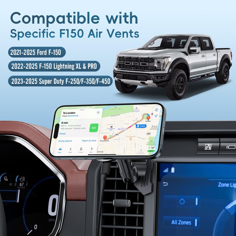 - 【Exclusive Customization】The magnetic car phone mount is only designed for 2021-2025 FORD F-150 / Raptor (All Trims), 2023-2025 FORD SUPER DUTY (All Trims), 2022-2023 FORD LIGHTNING (Pro & XLT ONLY), and 2024-2025 FORD LIGHTNING (XLT ONLY). this magnetic air vent phone holder is only designed for OEM dashboard, not compatible with third party modifications