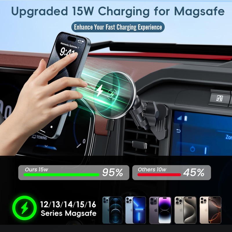 Kaishengyuan Wireless Charger Magnetic Vent Phone Mount Compatible with 2021-2025 Ford F-150, 2023-2025 Super Duty F250/F350/F450, Metal Phone Holder Cradles Bracket Stand for All Smartphone