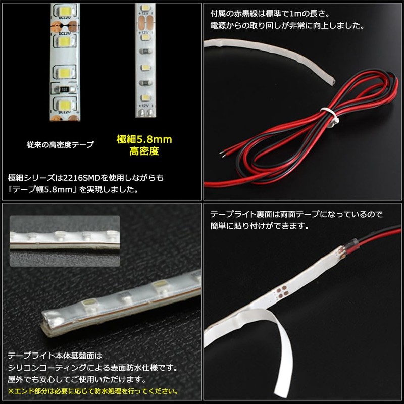 Kaito Denshi LED Tape Light, 12 V, Thin, Ultra Fine, Waterproof, High Density, Width 0.2 inches (5.8 mm), High Brightness, IP54, White Base, Single Terminal, White, 19.7 inches (50 cm)