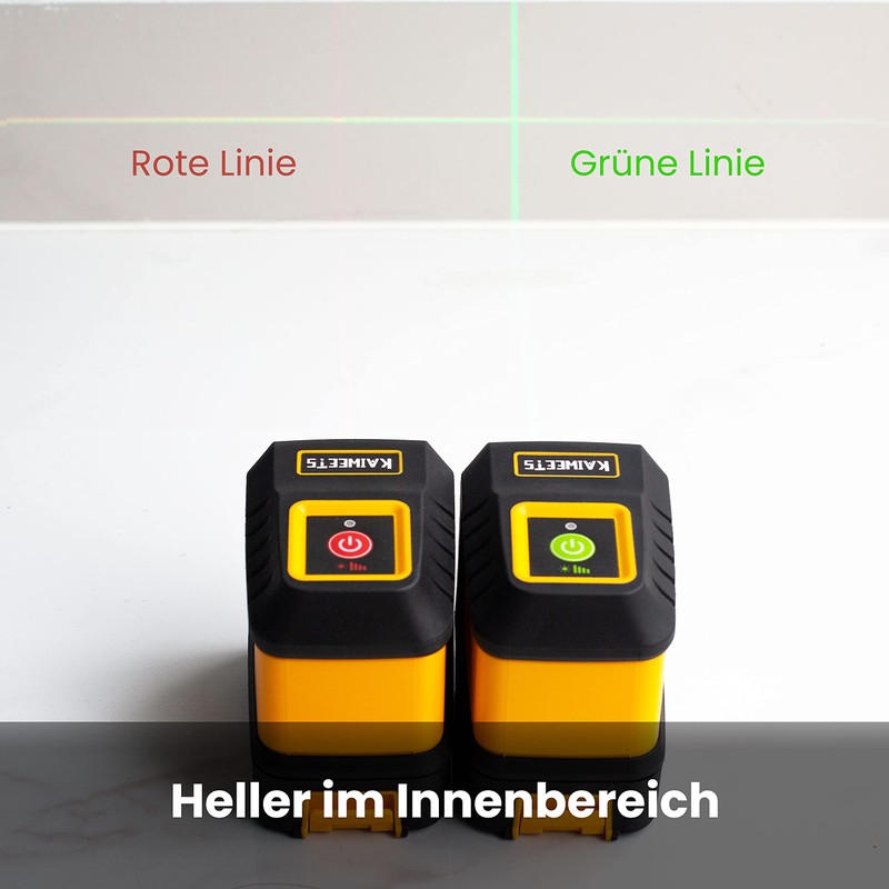 - Green laser line for horizontal and vertical levelling and angle measurements. Better visibility than red laser line