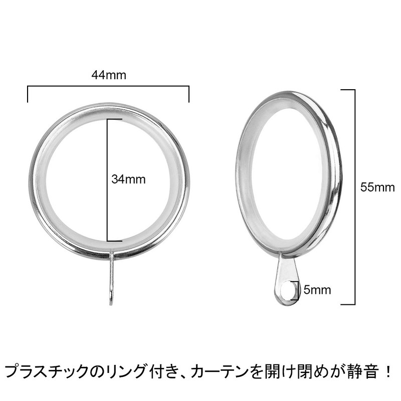 KaiYi Curtain Rings, Silent, Sliding Rings, Inner Diameter: 1.3 inches (34 mm), Curtain Hook Rings, Suitable for Tension Rod up to 1.2 inches (30 mm) Diameter, Silver, Pack of 20