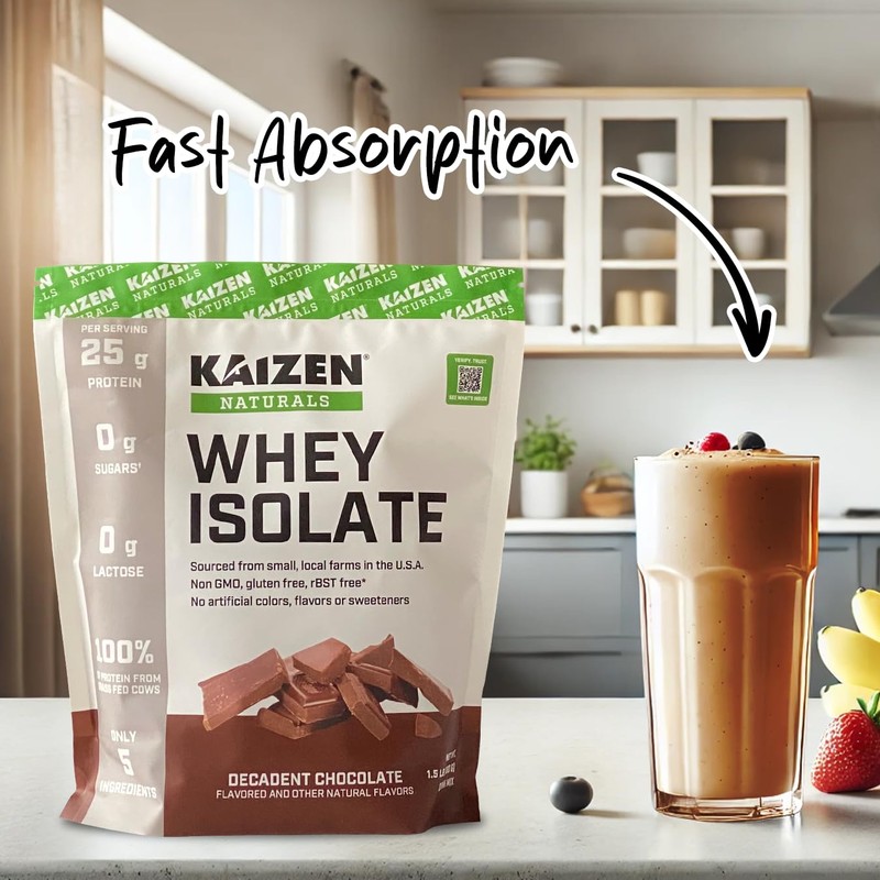 Kaizen Naturals Whey Isolate | Chocolate | 25g Protein | Grass fed | No Artificial Ingredients | Only 5 Ingredients | Fast Absorption | See the Test Results | 0g Lactose | Gluten Free | Non GMO | 1.5lb | 22 servings