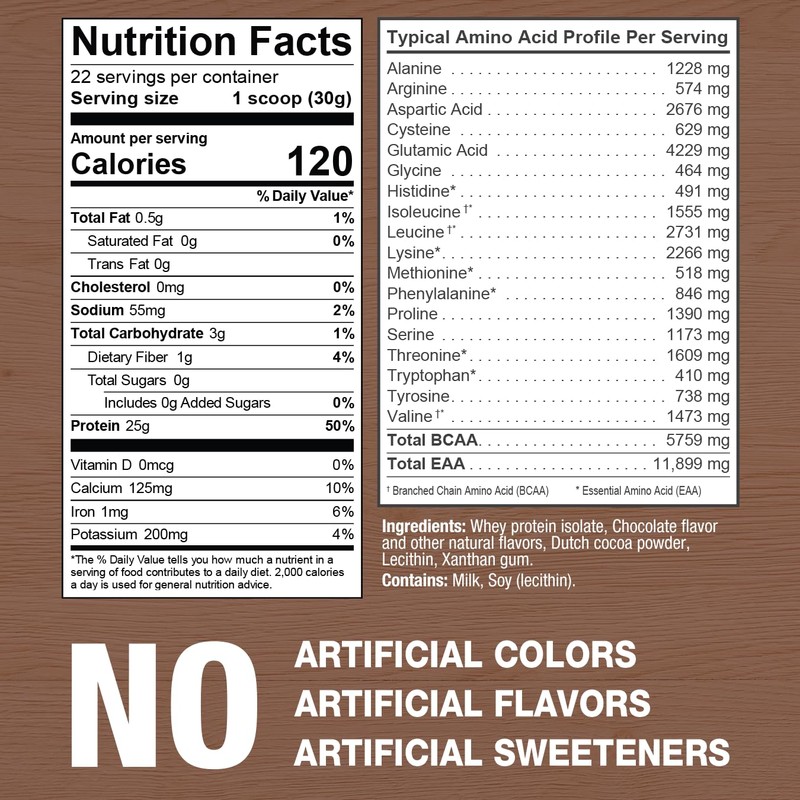 - Clean, Simple Nutrition: We believe less is more. That's why our whey protein isolate is made with just five high quality ingredients - whey isolate for fast absorption, natural chocolate flavor for a decadent taste, cocoa powder for rich chocolate flavor, lecithin for better mixability, and natural xanthan gum to keep every shake perfectly blended. No fillers, no artificial junk - just naturally clean nutrition.