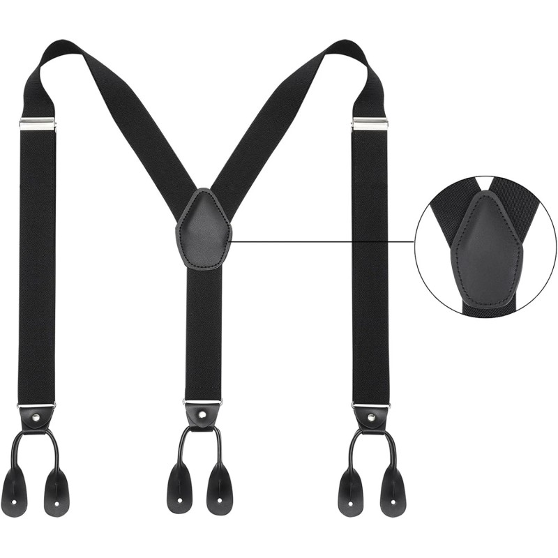 Kajeer Men Button Suspenders Adjustable, Heavy Duty Y-Back Elastic Black