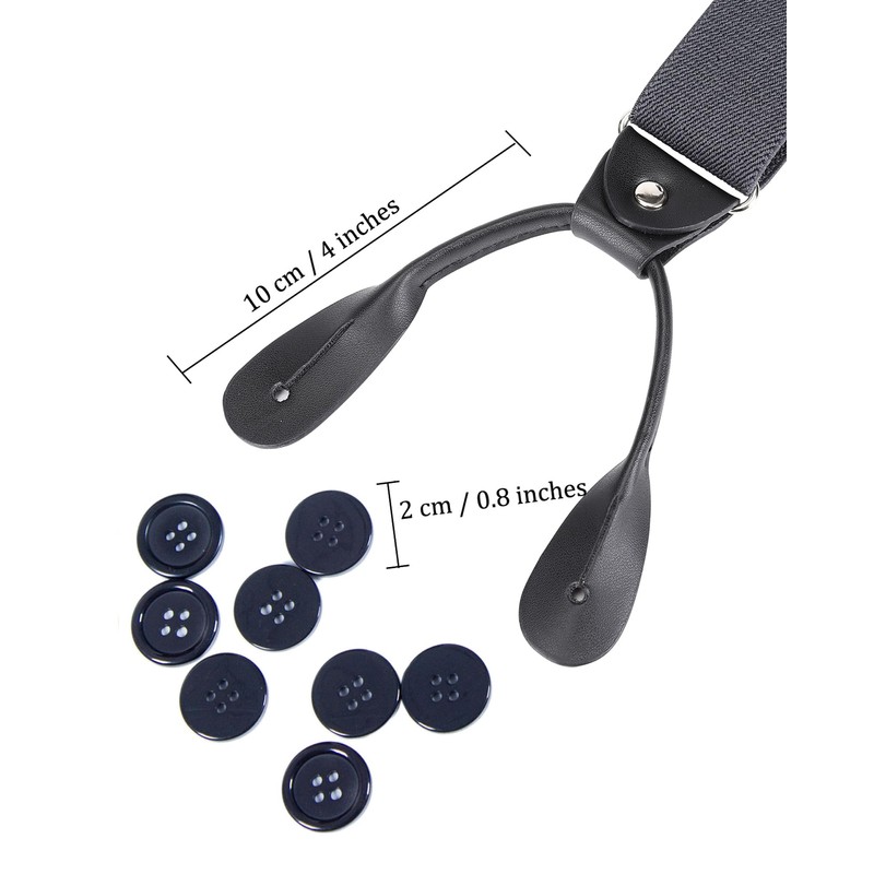 Kajeer Mens Adjustable Button End Suspenders - Y-Back Elastic Tuxedo Suspenders with Heavy Duty Leather Buttons End (Dark gray)