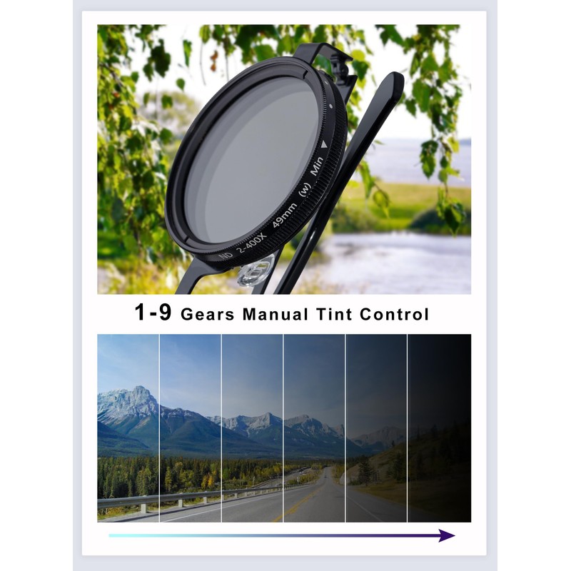 KAJILA 1-9 Gears Adjustable Tint Nightshift Glasses, Round Polarized Glasses ND Filter Lenses Metal Frame(2318)