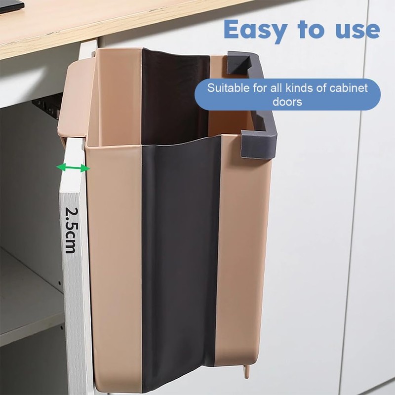 Kakalote Hanging Kitchen Trash Can, 2.4 Gallon Collapsible Trash Bin for Kitchen, Foldable Waste Bin for Counter top Under Sink Camping Car Bathroom Office Bedroom, Easy to Install