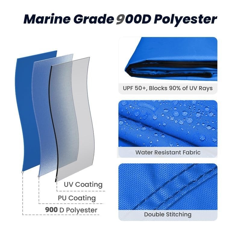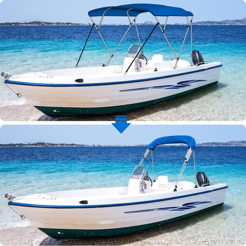 • Premium Fabric Canvas Cover: The boat canopy is made of marine grade 600D polyester canvas with PU/UV coating, providing strong protection against harmful UV rays, rain, sun, dirt, etc.