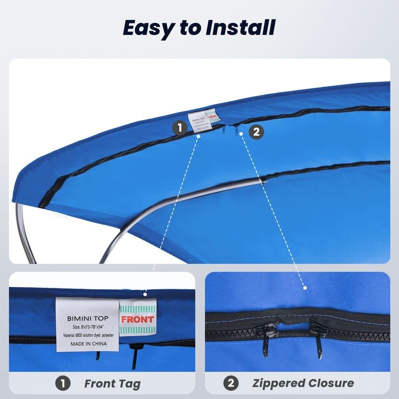 • Easy to Install and Replace: With the zipper closure, you could easily replace the bimini top cover without disassembling the frame.