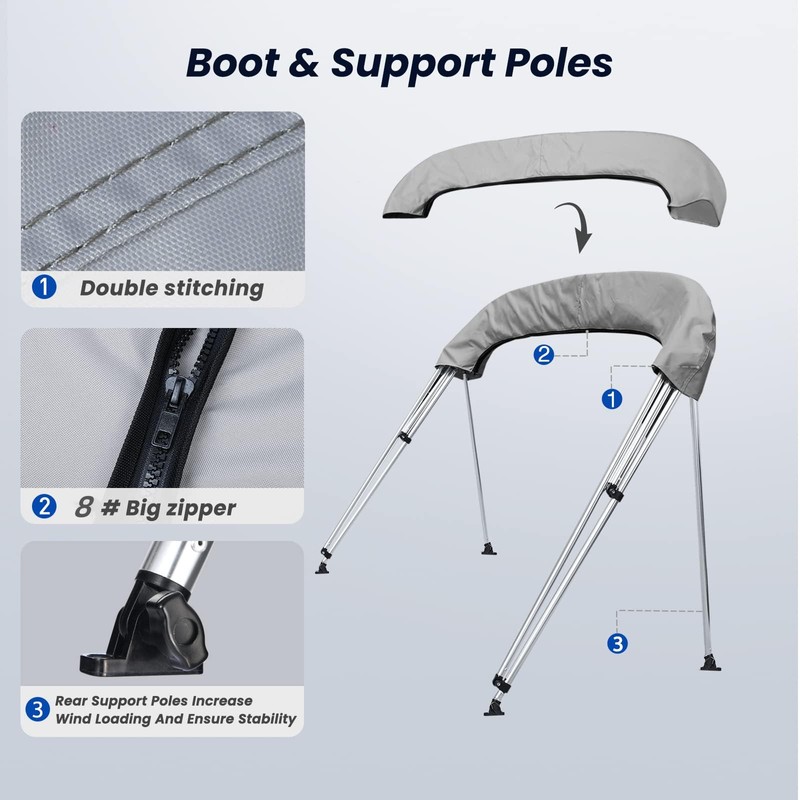 - Anti-Rust Aluminum Frame: Our pontoon bimini top with frame chooses double-walled 1" diameter 1.5mm thickness tubes for maximum strength, the surface is sprayed anti-oxidation paint, preventing rust.
