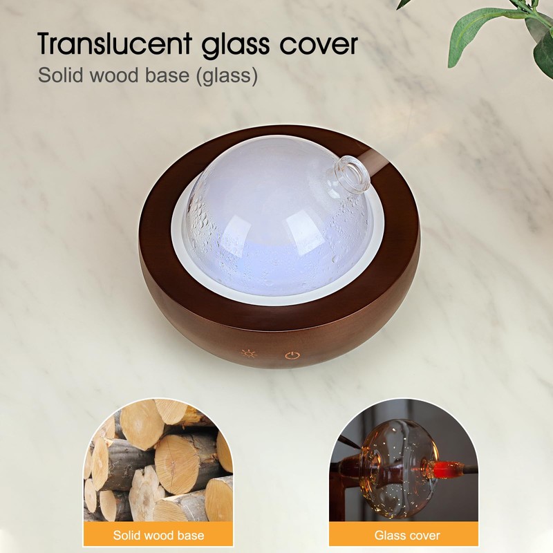 - 【CLASSICALLY MODERN DESIGN】This glass diffuser is made up of a real solid wood base and a hand-blown glass cover. The upgraded mist outlet, touch buttons and motors can be switched on and off by just touching the buttons with your fingers. It is advanced and high-quality.