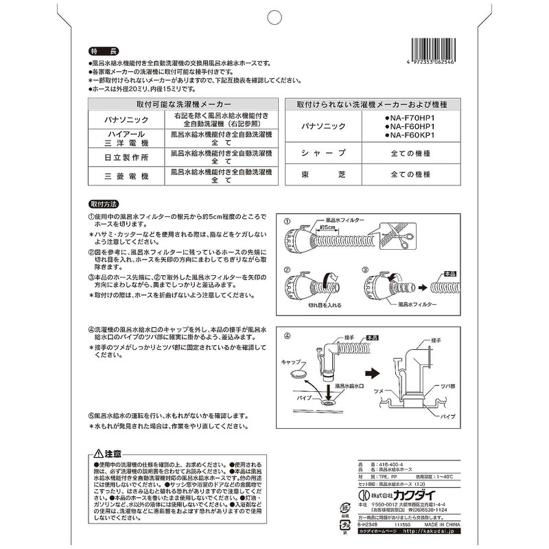 Kakudai 418-400-4 Bath Water Supply Hose for Washing Machines 4.1 ft (4 m)