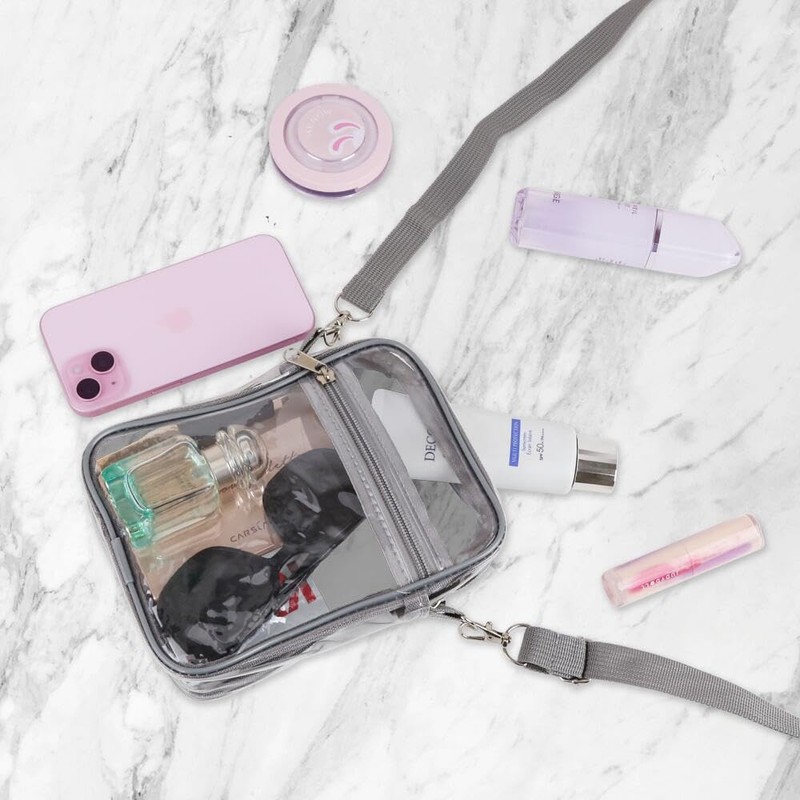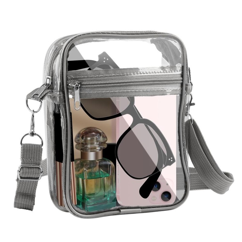 KAKULO Small Clear Crossbody Bag Stadium Approved Clear Purse Bag with Front Pocket for Concerts Sports Events (Gray, Small)