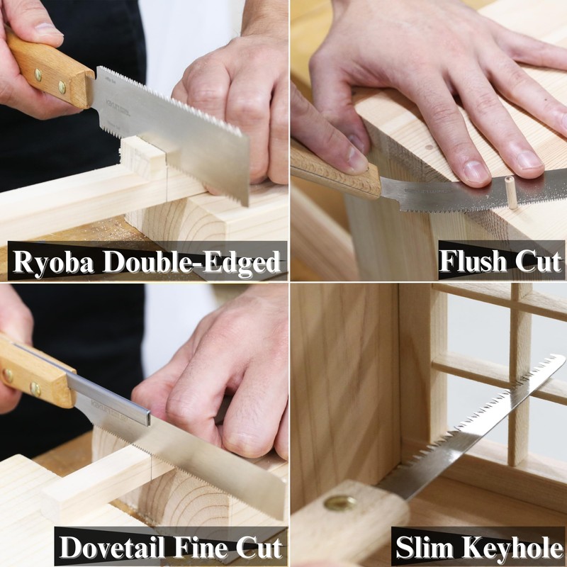 • [Japanese Mini Craft Saw Set] This set includes four saws to cover a wide range of woodworking tasks: a Ryoba double-edged saw for both rip and crosscuts, a flush cut saw ideal for trimming dowels and pegs, a dovetail fine-cut saw for precision cutting, and a keyhole saw designed for curved and tight spaces. With these saws, you can tackle virtually any woodworking project. Designed with the traditional Japanese pull-cut method, it allows for greater control and accuracy with less effort.