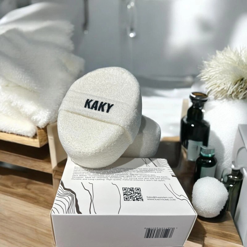 KAKY Loofah Bath Sponge Natural Biodegradable White