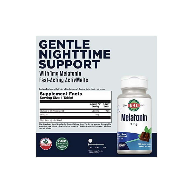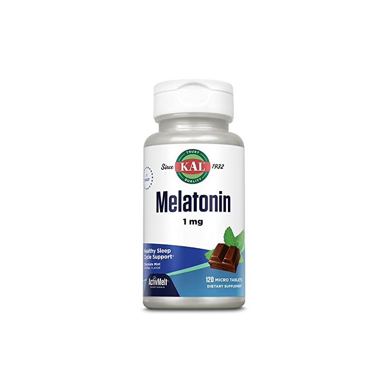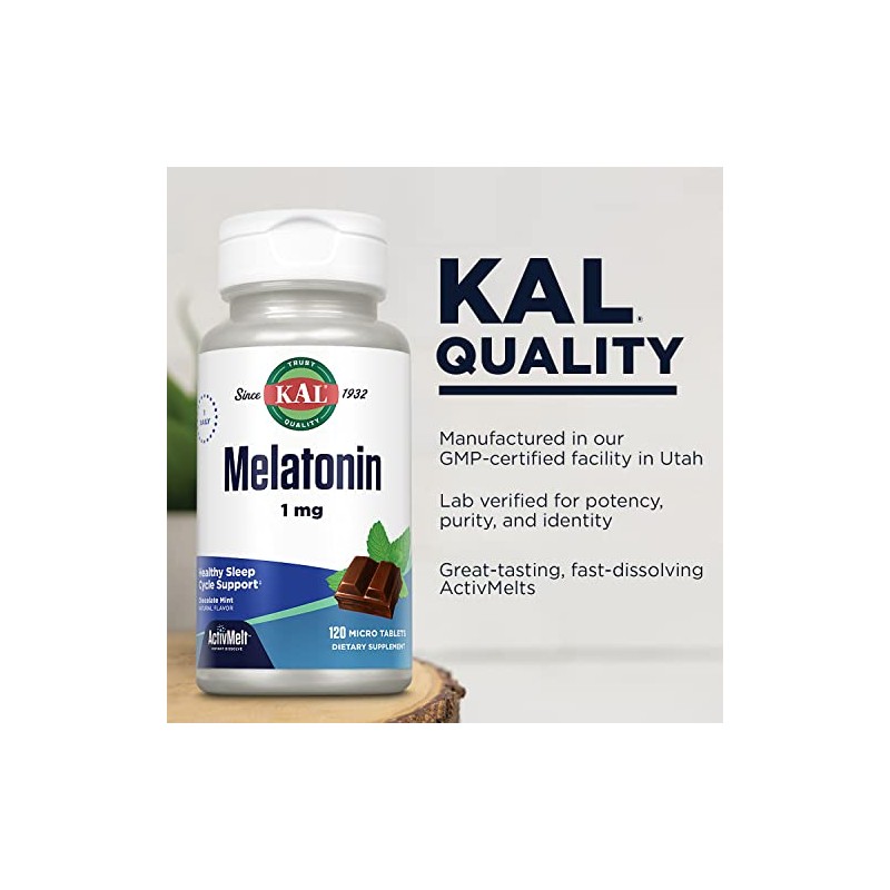 KAL Ayuda para dormir de melatonina de 1 mg, suplemento de melatonina que apoya la relajación calmante y un ciclo de sueño saludable, ActivMelts de disolución rápida, sabor natural a menta y