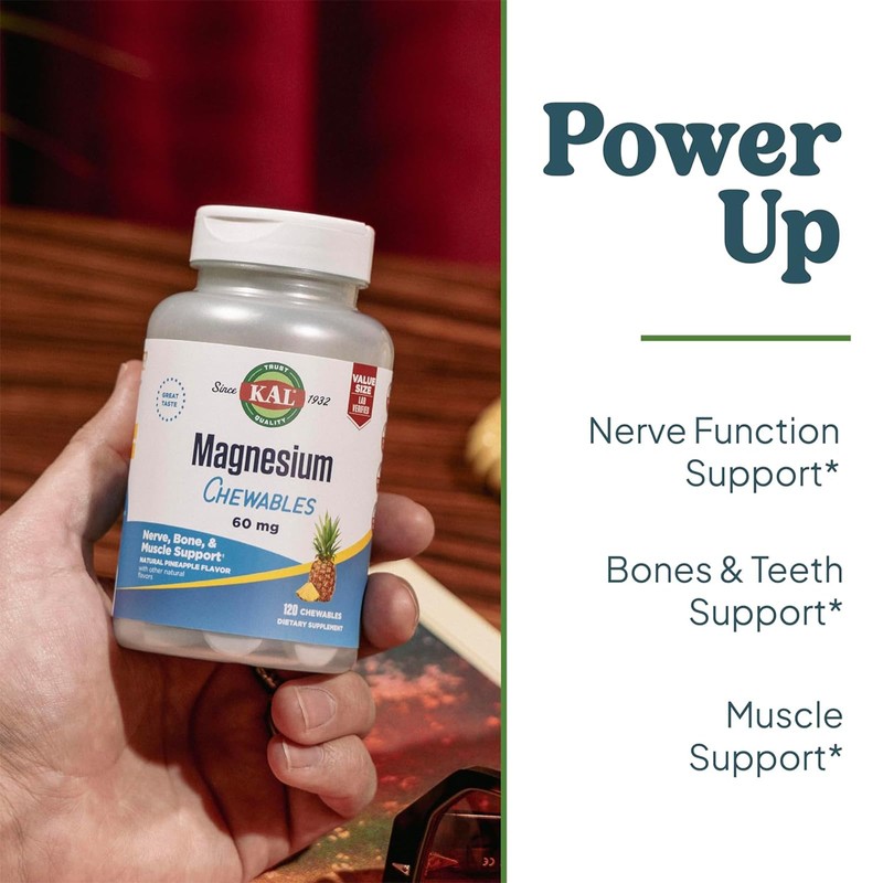 KAL KAL Magnesium Citrate Chewables and Magnesium Glycinate 350 Bundle, Nerve, Bone, Muscle, and Enzyme Support, 120 Chews, 240 VegCaps