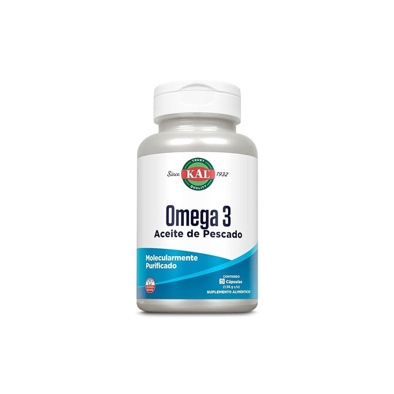 KAL Omega 3 (60 Cápsulas de gel) de aceite de pescado molecularmente purificadas, Garantía Clear quality (absorción en 30 min).