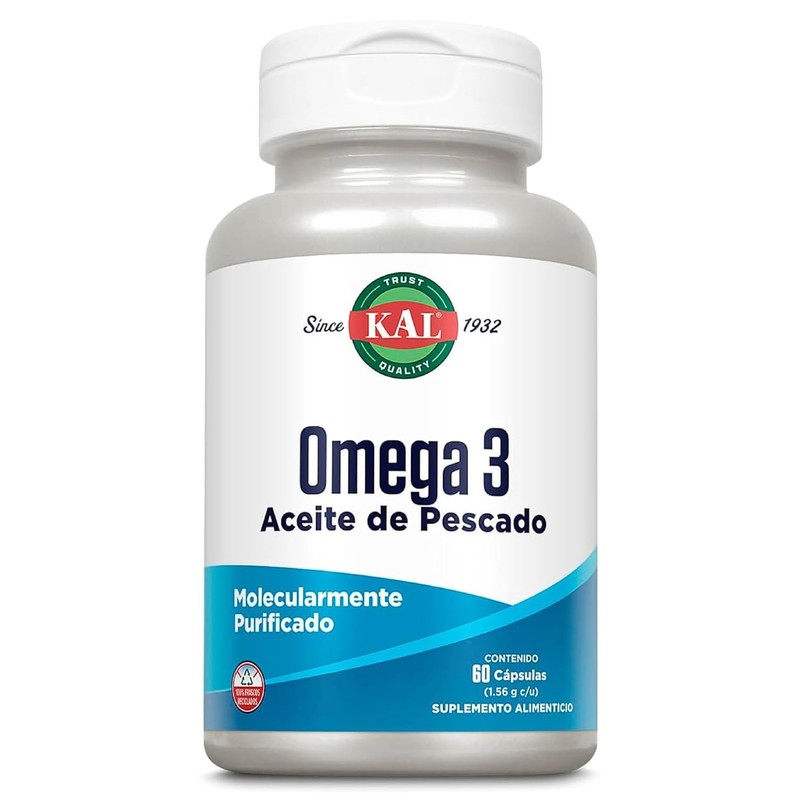 KAL Omega 3 (60 Cápsulas de gel) de aceite de pescado molecularmente purificadas, Garantía Clear quality (absorción en 30 min).