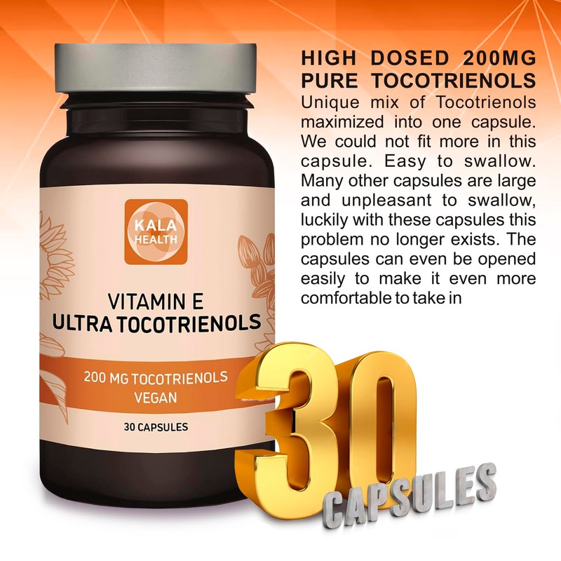 Kala Health Ultra Tocotrienol 200mg Vitamin E Vegan – All 4 tocotrienols - Alpha Tocotrienol + Beta Tocotrienol + Gamma Tocotrienol + Delta Tocotrienol – No Tocopherols - Unique Tocotrienol Complex