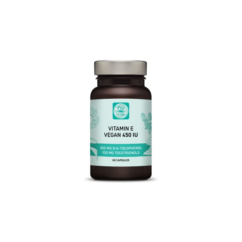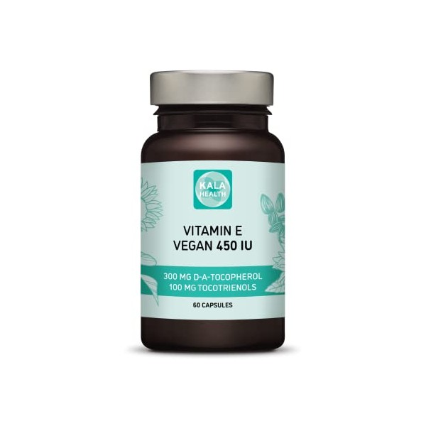 Kala Health Vitamin E 450 IU 400mg Tocopherol + Tocotrienol Vitamin E Vegan - Alpha Tocopherol + All 4 Tocotrienols â Alpha Tocotrienol + Beta Tocotrienol + Delta Tocotrienol and Gamma Tocotrienol