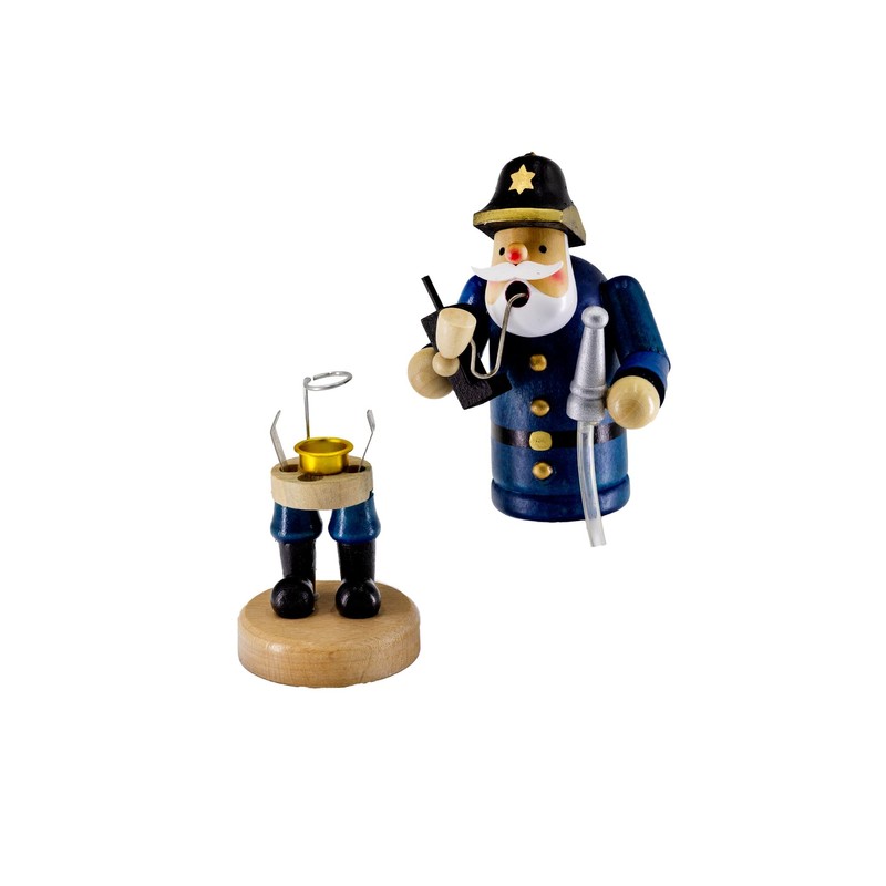 Kaladia Räuchermännchen, Firefighter with Mobile Phone, Incense Incense Figure, Smoke Figure, Mountain Man 14cm High Wooden Wonderful Christmas Decoration for Every Home