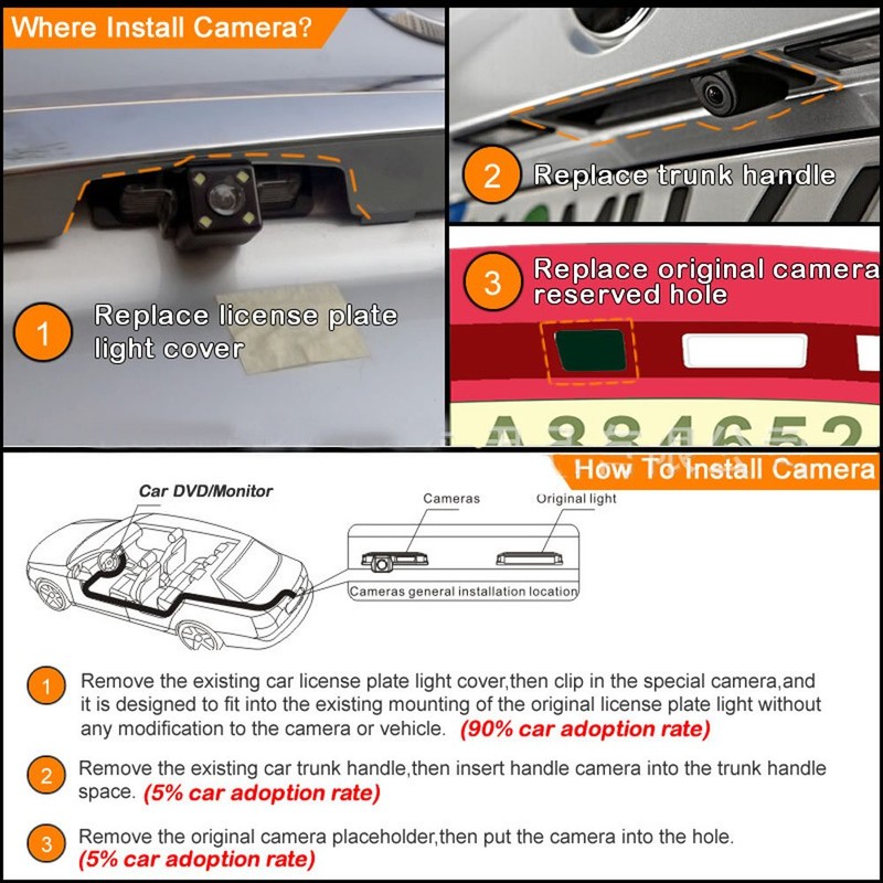 - Designed according to the licence, light holes, high clarity, night vision, plastic to install