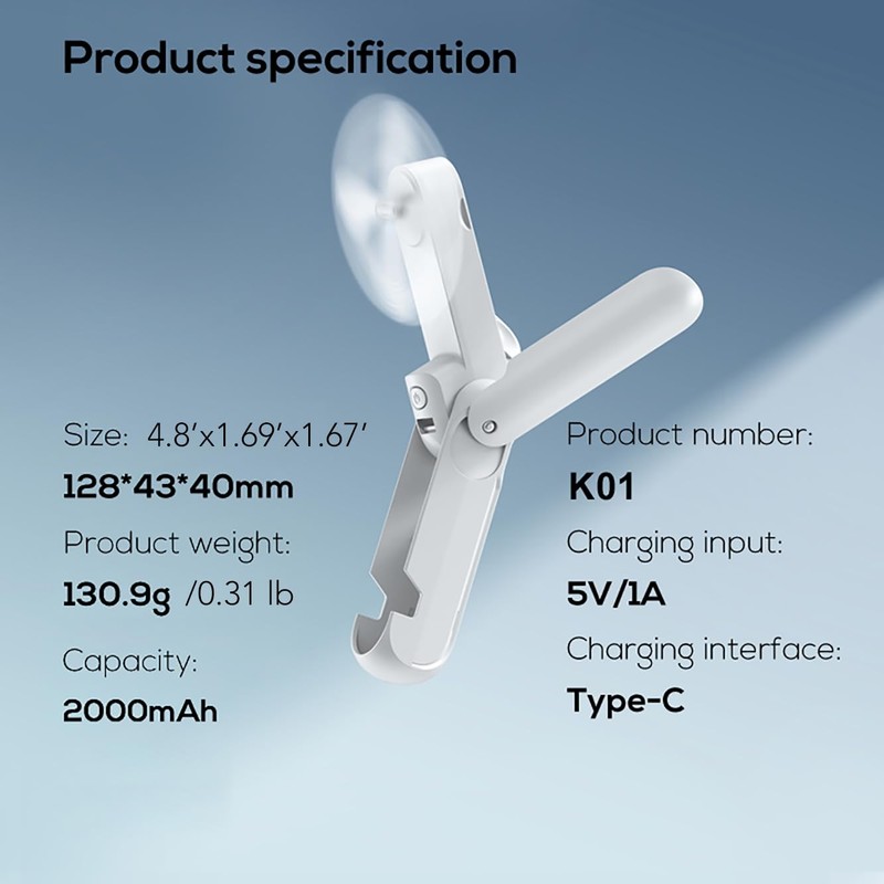 - Design: Designed in a unique palm-sized form, the portable fan easily fits into any bag for on-the-go convenience.