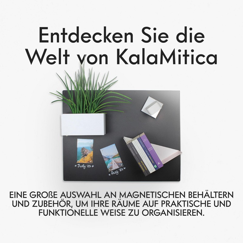 KalaMitica + It is the line of modular and magnetic furnishings designed to create walls with large magnetic boards in the home and office. The range includes minimalist black and white accessories that are perfect for modern and contemporary environments. Made of painted ABS resin or powder coated steel and equipped with strong neodymium anti-slip magnets, KalaMitica+ accessories ensure stability, durability and a consistently high load capacity. KalaMitica+ accessories are highly modular, so you can combine the elements in different ways to suit your taste and needs. With the large metallic tapestries as a base, you can create and redesign your decor as you like - the only limit is your imagination!